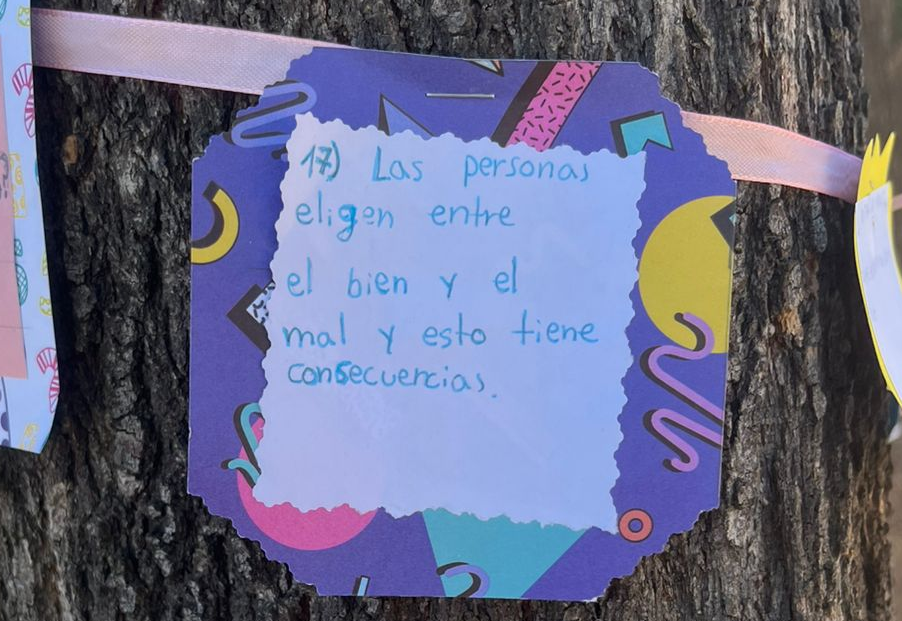 Posteriormente, cada estudiante elabor贸 oraciones que reflejaban lo m谩s significativo de su proceso formativo. Desde su propia mirada, expresaron la importancia de pensar, hacerse preguntas, convivir con otros y comprender el mundo que los rodea.